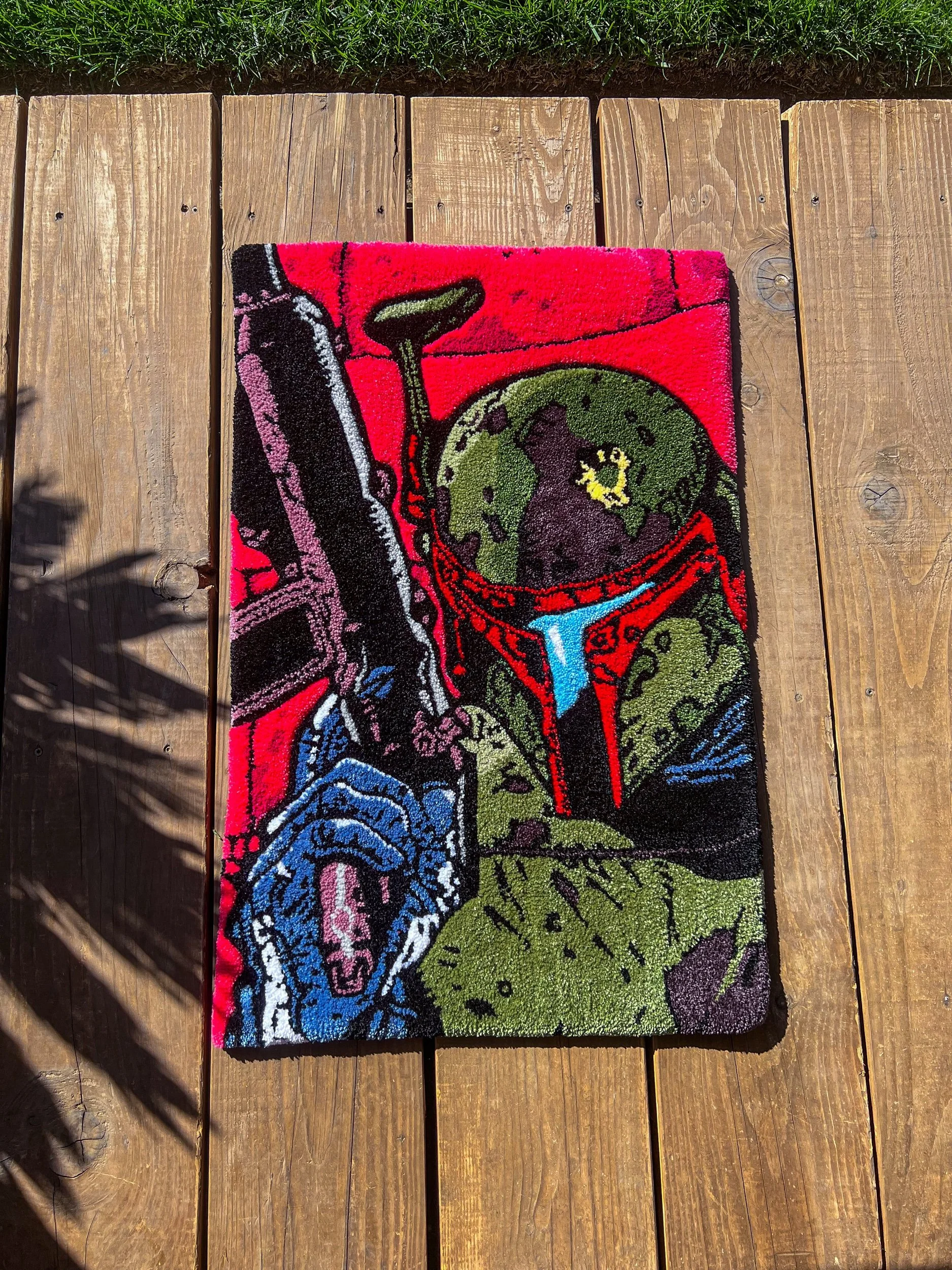 Shop › FETT Image 1 of 5 Image 2 of 5 Image 3 of 5 Image 4 of 5 Image 5 of 5 FETT $550.00 sold out BOBA FETT READY TO SHIP.1/1 23 x 36in100% Acrylic Yarn Sold Out Added! BOBA FETT READY TO SHIP.1/1 23 x 36in100% Acrylic Yarn